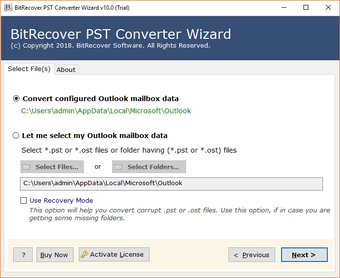 Please take a free test drive of the demo version. It allows you to export the top 25 Outlook data items into multiple formats. After you are completely satisfied with the tool’s performance, please buy the license keys for unlimited extract of folders from the Outlook application.