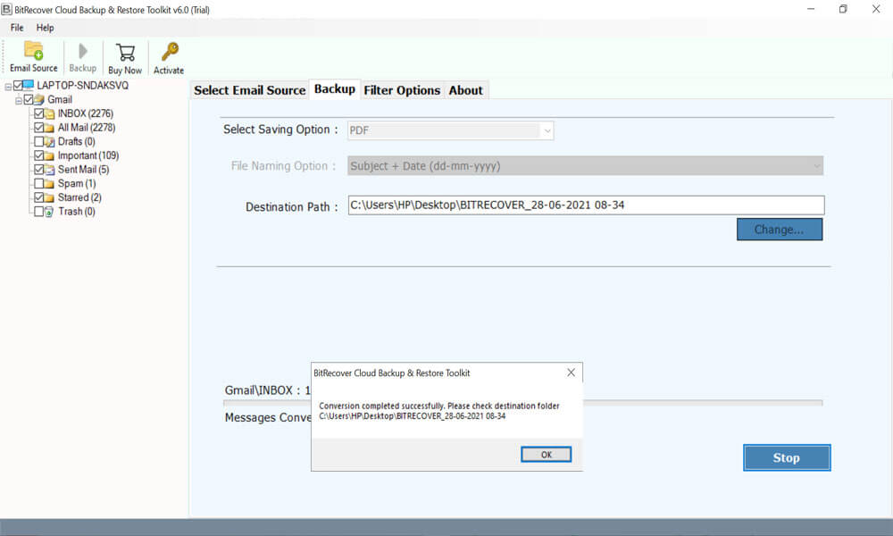 This Cloud Email Backup Software provides several file naming options to manage resultant data. Users can restore cloud to desktop in separate email or document by Subject + Date (dd-mm-yyyy), From + Subject + Date (yyyy-mm-dd), From + Subject + Date (dd-mm-yyyy), Date (dd-mm-yyyy) + From + Subject, AutoIncrement, etc.