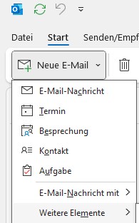 - Neue PST Datei erstellen: Von in den Posteingang, Neue E-Mail auswählen> Weitere Elemente>Outlook Datendateien. Jetzt können sie einen Dateiname enteren.