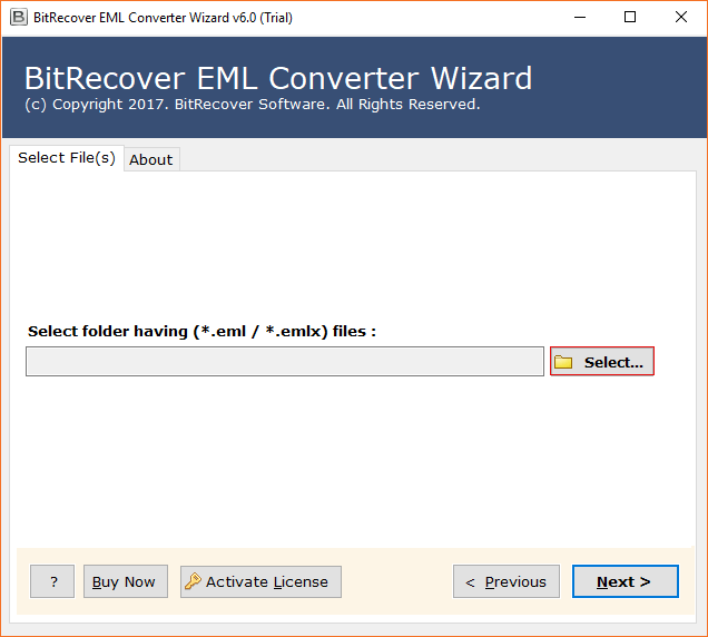 Avec les utilisateurs BitRecover Convertisseur EML peuvent importer des fichiers EML fichiers en vrac sans aucun tracas. Ce convertisseur de fichiers EML de EML permis d'importation avec deux modes d'exportation de mode unique ou d'un lot. Vous pouvez exporter des données dans un fichier EML illimité sans encombrement de perte de données.