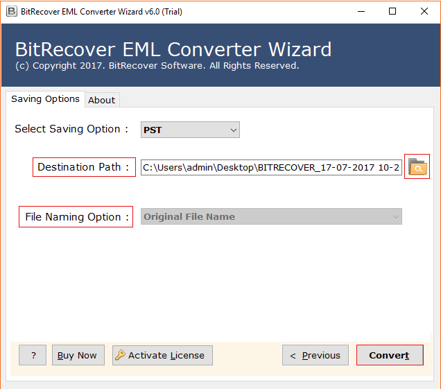 Maintenant, vous pouvez exporter EML à PST, DOC, HTML et DOC, MSG ou d'autres formats de fichiers libres. Une version gratuite de Convertisseur EML est disponible BitRecover pour convertir 25 fichiers PST EML à, EML au DOC et EML à MBOX. Et un autre format de fichier de sauvegarde absolument gratuit.