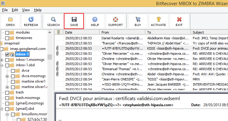 MBOX vers Zimbra Software MBOX vers Zimbra Software peut convertir, migrer, importer ou exporter des fichiers MBOX vers n'importe quel client comme The Bat!, Thunderbird, Pocomail, Postbox, Entourage, etc. le format requis.
