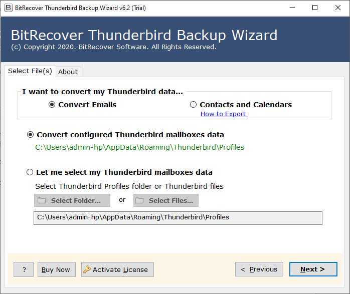 Il backup di Thunderbird è così facile con lo strumento di backup guidato di BitRecover Thunderbird, il software può facilmente eseguire il backup di ogni mail e cartella di posta in thunderbird e salvare facilmente la posizione dell'utente. Questo design software consente di eseguire il backup di Thunderbird in modo rapido e veloce senza modifiche e errori.